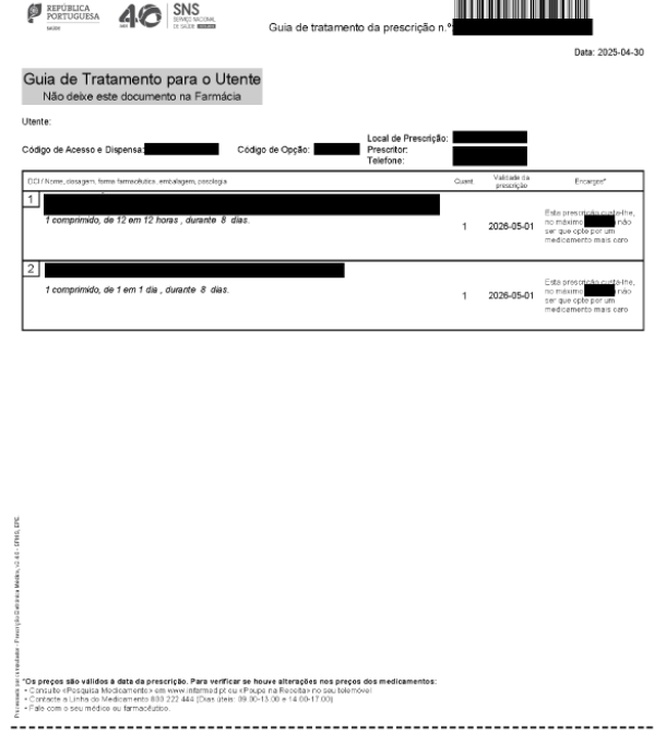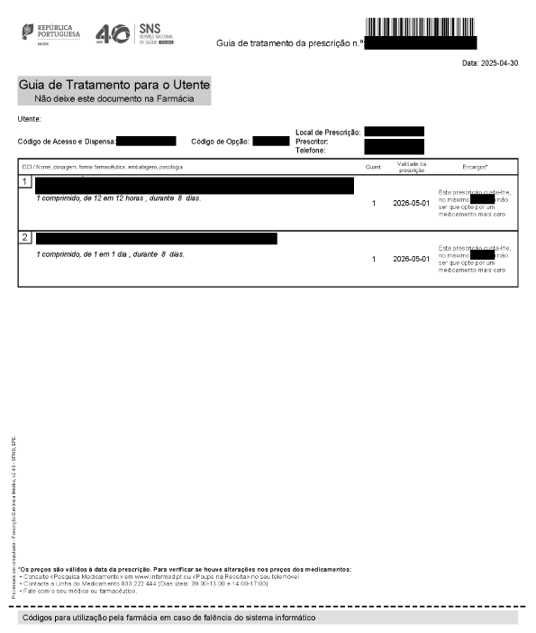 - Prescrição Eletrónica Médica (PEM) {receita médica em formato digital com códigos para usar na farmácia}